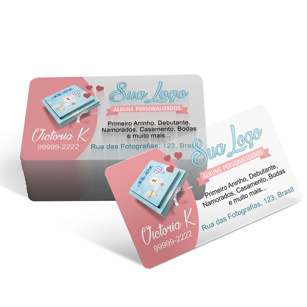 CARTÕES DE VISITA PVC 0,30MM TRANSLÚCIDO TRANSLÚCIDO COM TINTA BRANCA Colorido frente - 100 un.
