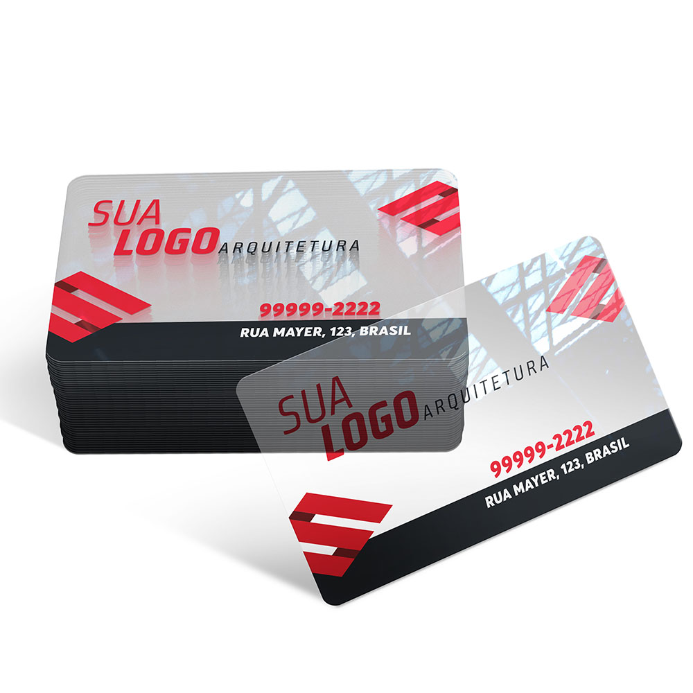 CARTÕES DE VISITA PVC 0,30MM TRANSPARENTE TRANSPARENTE COM TINTA BRANCA Colorido frente - 250 un.